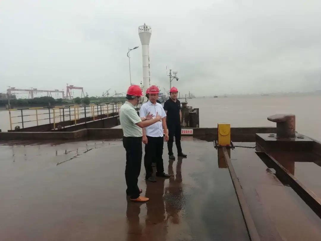 中林時(shí)代運(yùn)營(yíng)管理部副部長(zhǎng)吳保辰,如皋港務(wù)集團(tuán)(港區(qū))副總經(jīng)理顧伯寬陪同檢查。