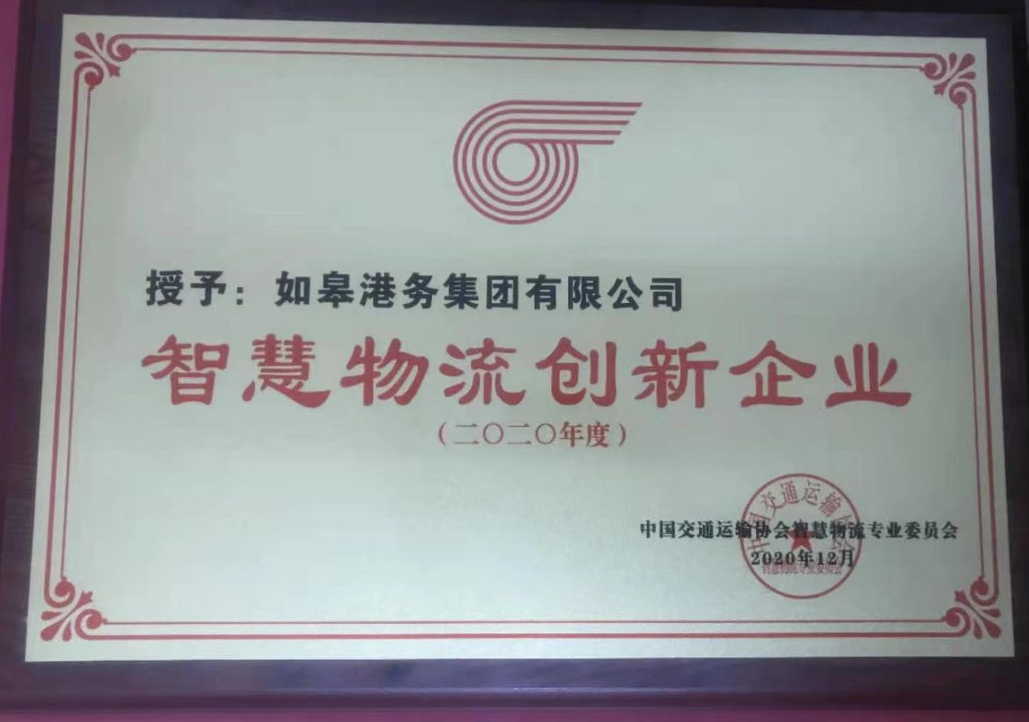 憑借著在2020年抗擊疫情中的積極表現(xiàn),在保障木業(yè)產(chǎn)業(yè)鏈及供應(yīng)鏈穩(wěn)定中發(fā)揮的重要作用,在研發(fā)應(yīng)用智慧科技物流中的大力投入,如皋港務(wù)集團(tuán)榮獲了由中國(guó)交通運(yùn)輸協(xié)會(huì)智慧物流專業(yè)委員會(huì)頒發(fā)的“2020年度智慧物流創(chuàng)新企業(yè)”的榮譽(yù)稱號(hào)。